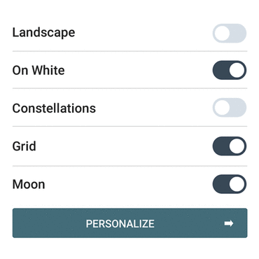 Design your Star Maps the way you want. Have constellations, a grid or leave it as simple as stars in the sky.