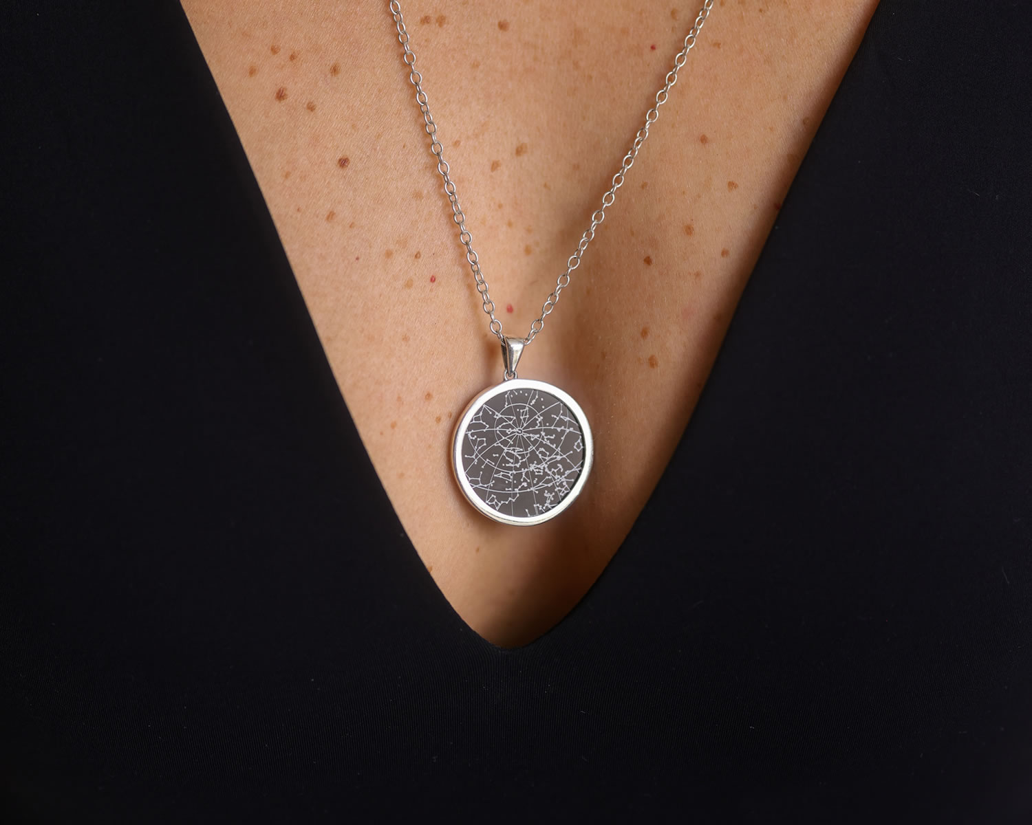 Frame your memories with a custom Night Sky. Etched on a Black Onyx gemstone and set in a luxurious Sterling Silver bezel mount.