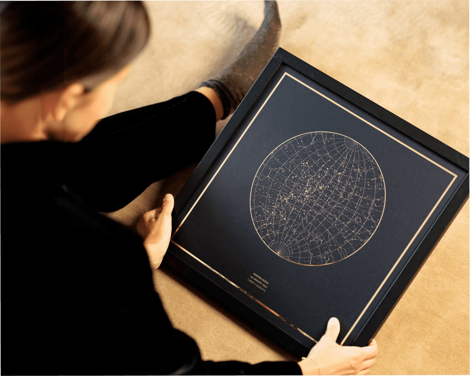 The night sky from a moment that mattered: the day they were born, a night you shared, or any date you want to remember. A personalised star map or engraved jewelry to hold close.