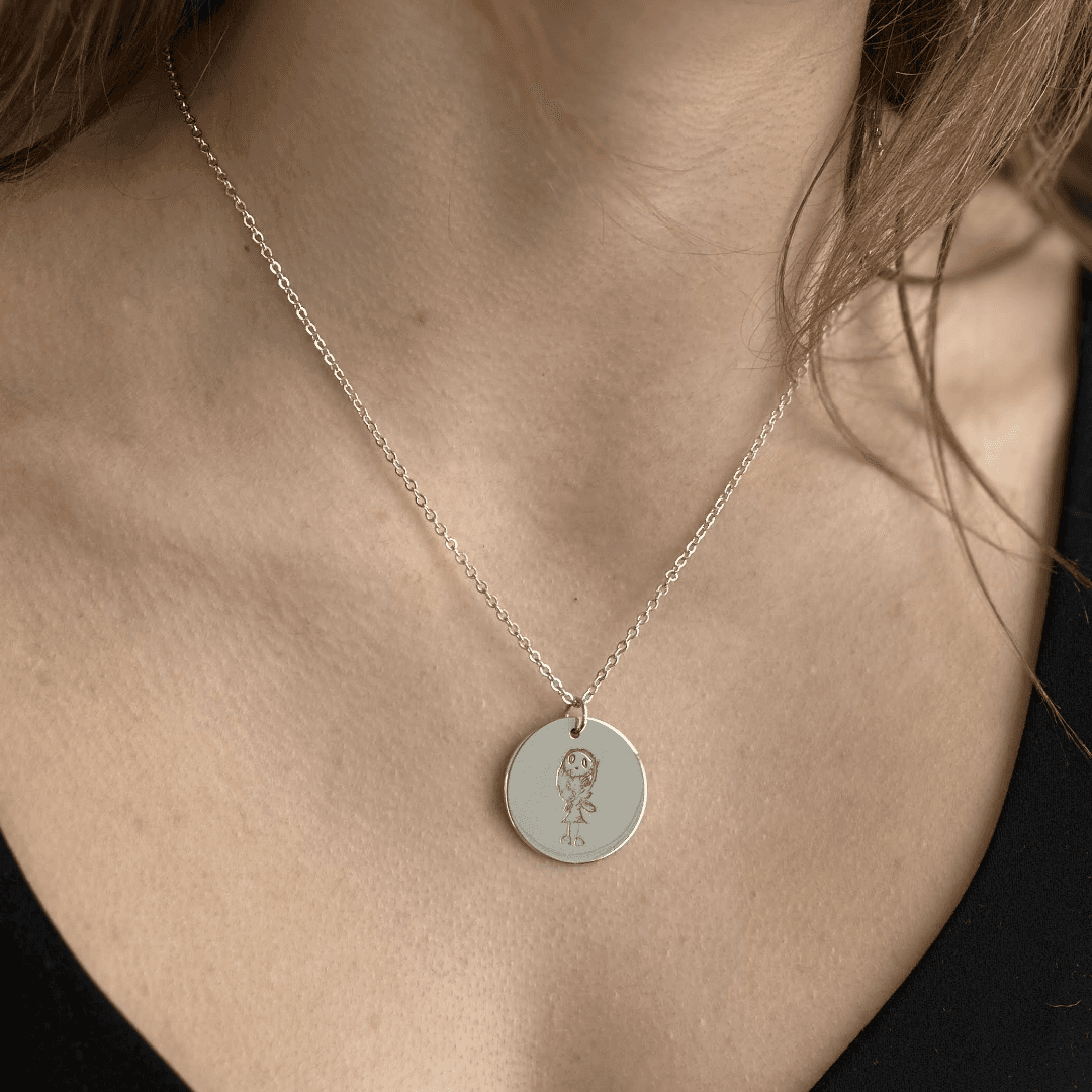 Each custom Night Sky Doodle is etched on a 25mm sterling silver pendant that hangs elegantly from an 18" sterling silver chain. It has been laser engraved and polished by hand. Each one a unique piece to wear always.